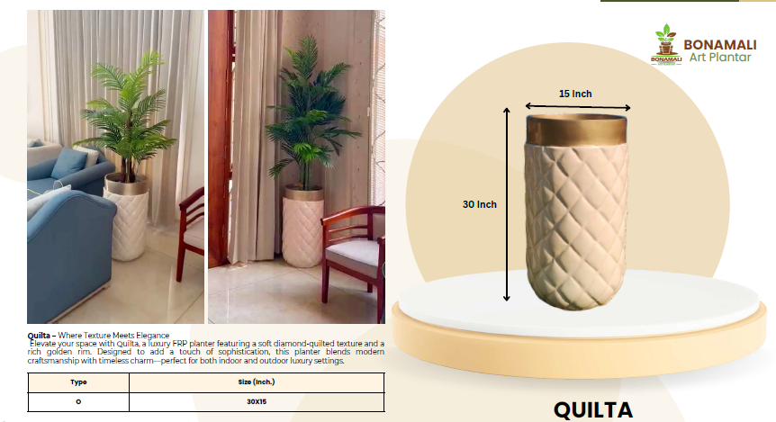 Enhance your space with our elegant planter pots and boxes, designed to bring sophistication and charm to any garden, balcony, or indoor area. Perfectly crafted for both style and functionality, these planters are built to last. Direct from Our Trusted Manufacturing Partner: Premium quality planters, delivered right to your door. Weather-Resistant & Durable: Crafted to thrive in the UAE’s climate, offering long-lasting beauty. Versatile Designs: Elegant options for every space, from compact pots to spacious boxes. Effortless Care: Lightweight, low-maintenance, and easy to clean for your convenience. Transform your space with timeless elegance. Order now and enjoy swift, hassle-free delivery!